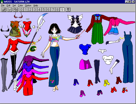 the Kiss File: darkkiss.lzh My appreciation: It had been my favorite when I downlaoded it. The clothes are beautifully original and well-made. Do you see the quantity of clothes ans do you see how they are so pretty? Yeah, maybe Hotaru is gothic after all! The sadness in this beautiful work is the ugly background that never changes... Click on the image to downlaod |